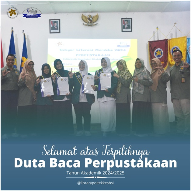 Duta Baca Perpustakaan Tahun 2024 Novita Wulaningsih (TBD) 22114071   Runner-up Duta Baca Perpustakaan Tahun 2024 Vina Attya Ramadhani (FA) 23484009   Sahabat Perpustakaan 2024 Nu’Aina Arzety (FA) 22484047   …